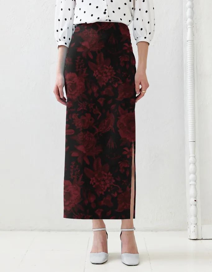 Design: A classic pencil silhouette elevated with a subtle side slit for ease of movement and a modern edge.