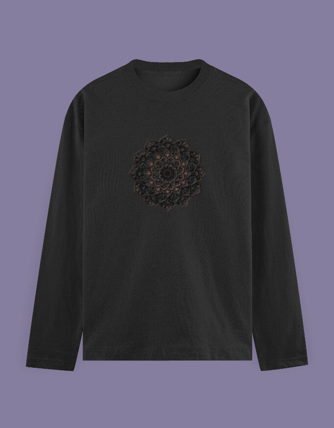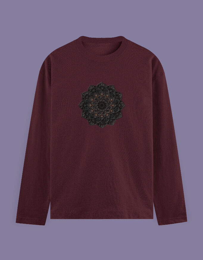 A captivating women’s full-sleeve T-shirt adorned with an intricate mandala magic design symbolizing balance and positive energy. Crafted from soft, breathable fabric with a comfortable, flattering fit, it’s ideal for everyday wear or layering. Durable seams and vibrant print make this a stylish, expressive choice for casual or creative looks.